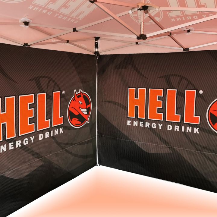 Of het nu een kleine tent van 2x2 m is of een grote reclame tent van 4x8 m, we printen op deze tenten met kleurige afbeeldingen, grafische elementen of bedekken het volledige oppervlak van de reclame tent met een ontwerp naar keuze.