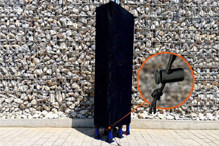 - Model Exclusive Staal, geschikt voor gebruik bij wind tot 60 km/u. Poten met openingen voor verankering in de grond met haringen - gratis!