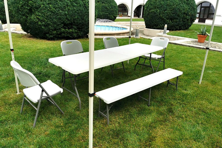 Bekende biersets behoren tot het verleden, evenals de bewerking van houten elementen. De opklapbare kunststof bank is een van de belangrijkste producten in de wereld van opklapbare meubels voor de horeca. Traditionele festivals gerelateerd aan eten, tentoonstellingen of barbecues zijn niet meer compleet zonder opklapbare meubels. Voor dergelijke doeleinden en vele anderen is de opklapbare bank gecreëerd om voldoende zitplaatsen te bieden, het uitklappen te vergemakkelijken en het onderhoud tot een minimum te beperken.