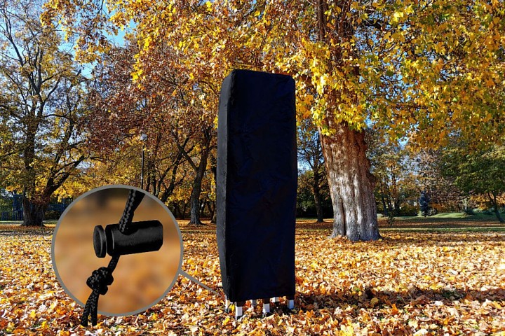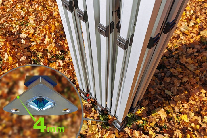 - Model Exclusive van aluminium, geschikt voor gebruik bij wind tot 60 km/h. Poten met openingen voor verankering in de grond met haringen - gratis!