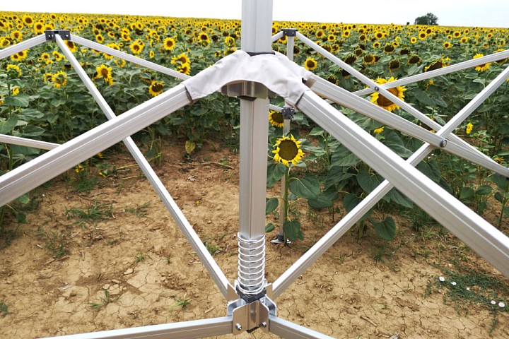 Deze snel opzetbare tent is een echt luxe item dat uw merk vertegenwoordigt op elke beurs, jaarmarkt of evenement. Dankzij het innovatieve scharniersysteem en de nauwkeurige verbindingen kunt u de tent zelfs alleen opzetten binnen enkele minuten. Elk deel van het aluminium profiel is extra versterkt voor veeleisend professioneel gebruik. Ondanks de hoge stabiliteit is de tent verrassend compact en past hij na het inklappen comfortabel in de kofferbak van een personenauto.