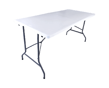 Wanneer de plastic tafel is opgevouwen, ontstaat er een draagbare koffer die gemakkelijk te verplaatsen is. De stalen poten worden binnenin opgeborgen.