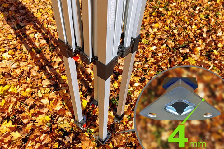 Deze opvouwbare tuintenten easy up 2x2m heeft sterke aluminium profielen. Dankzij het gemakkelijk werkende opzetmechanisme kan de tent in enkele seconden worden opgezet. De poten zijn uitgerust met stevige voeten die zorgen voor stabiliteit en duurzaamheid van de wanden. Het schroefmechanisme maakt het gemakkelijk om de tent op te zetten en af te breken. Dankzij de schroefverbindingen is het probleemloos mogelijk om elk onderdeel van de constructie te vervangen.