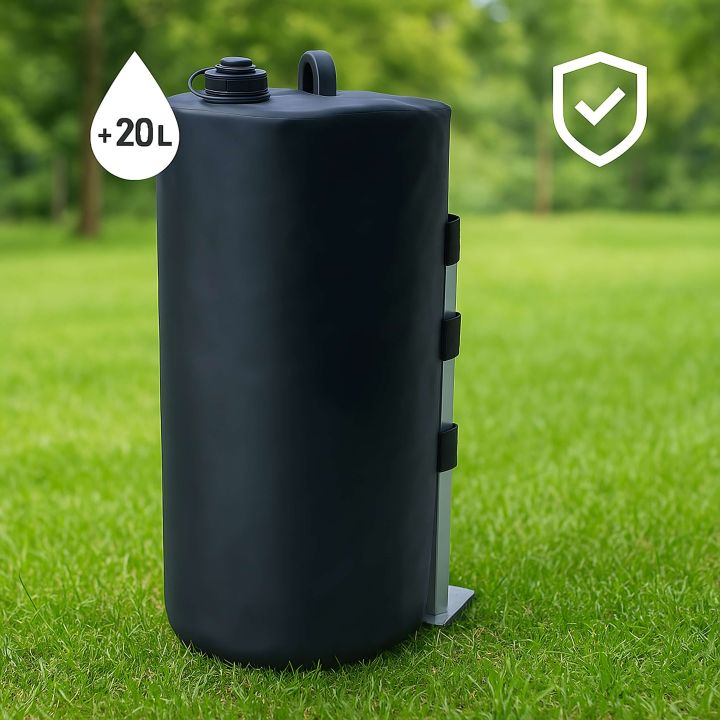 Inhoud van 20 liter – Na het vullen met water weegt het gewicht 20 kg, wat zorgt voor voldoende stabiliteit, zelfs bij sterke wind.